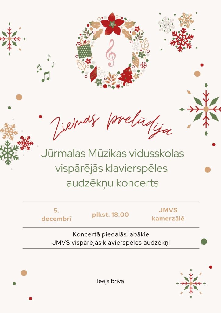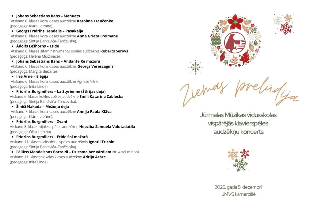 5. decembrī plkst. 18.00 aicinām klausīties vispārējās klavierspēles audzēkņu koncertu “Ziemas prelūdija”!